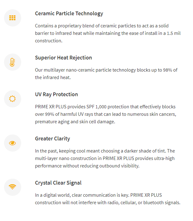 XPEL™ PRIME XR PLUS contains ceramic particles that filter out the sun’s infrared radiation — making them more effective than traditional metalized or dyed films.